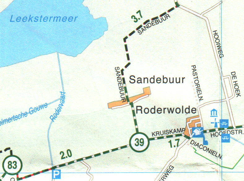 VVV-kaart GroningenDe VVV-kaart (Falk, Groningen, 1:50.000) is nuttig voor fietsers, maar mist rond tussen Roderwolde en het Leekstermeer nou net de mooiste wandelpaden. Die kaart laat ik dus thuis.