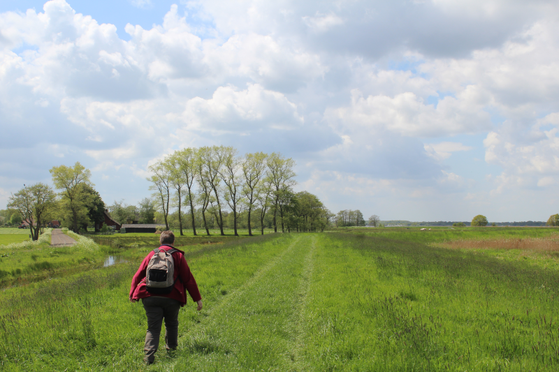 We gingen wandelen in De Onlanden, zuidwestelijk van de stad Groningen. Voormalig boerenland, waar generaties lang op geploeterd is met wisselend, en vooral matig, succes. De laagste delen worden nu weer moerassig en vogels tieren hier beter dan melkvee. In nieuw-Nederlands heet dat ‘wetlands’. Ach, dat gebeurt overal: boerenland dat ‘weer natuur’ wordt. Alsof er in ons land nog een vierkante meter is waar wij als mensen niet de hand aan hebben geslagen. Maar, ‘echte’ natuur of niet, voor de bezoeker is het prachtig om te wandelen en foto’s te maken. En, als je je daarvoor openstelt, wordt wandelen ook mediteren op twee benen.