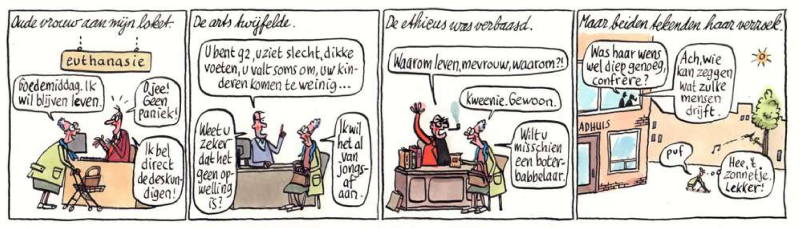 Ik mag hopen dat ze mij toch ook iets van haar aanvaarding en wil om te leven heeft meegegeven. Ik herken haar wel in deze Anton Dingeman-strip van Peter Geenen (Trouw 26 juni 2018).