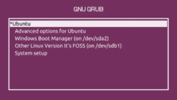 Wil je toch nog even iets controleren of doen in de veilige modus? Dan moet je die starten vanaf het GRUB-bootmenu. Dat krijg je normaliter niet te zien. Om het tevoorschiijn te toveren druk je, zodra je bij het opstarten het opstartscherm ziet, en blijf je drukken op de ‘Shft’-toets (wanneer je nog werkt met het goeie ouwe BIOS), of op de ‘Esc’-toets (wanneer je computer met UEFI start). Dat laatste geldt voor bijna elke computer uit het afgelopen decennium. Het GRUB-menu verschijnt, selecteer ‘Advanced options’ of ‘Recovery Mode’ met de pijltjestoetsen en bevestig met ‘Enter’. Ook hier geldt: de GRUB-shell geeft je root-permissies, dus wees voorzichtig!