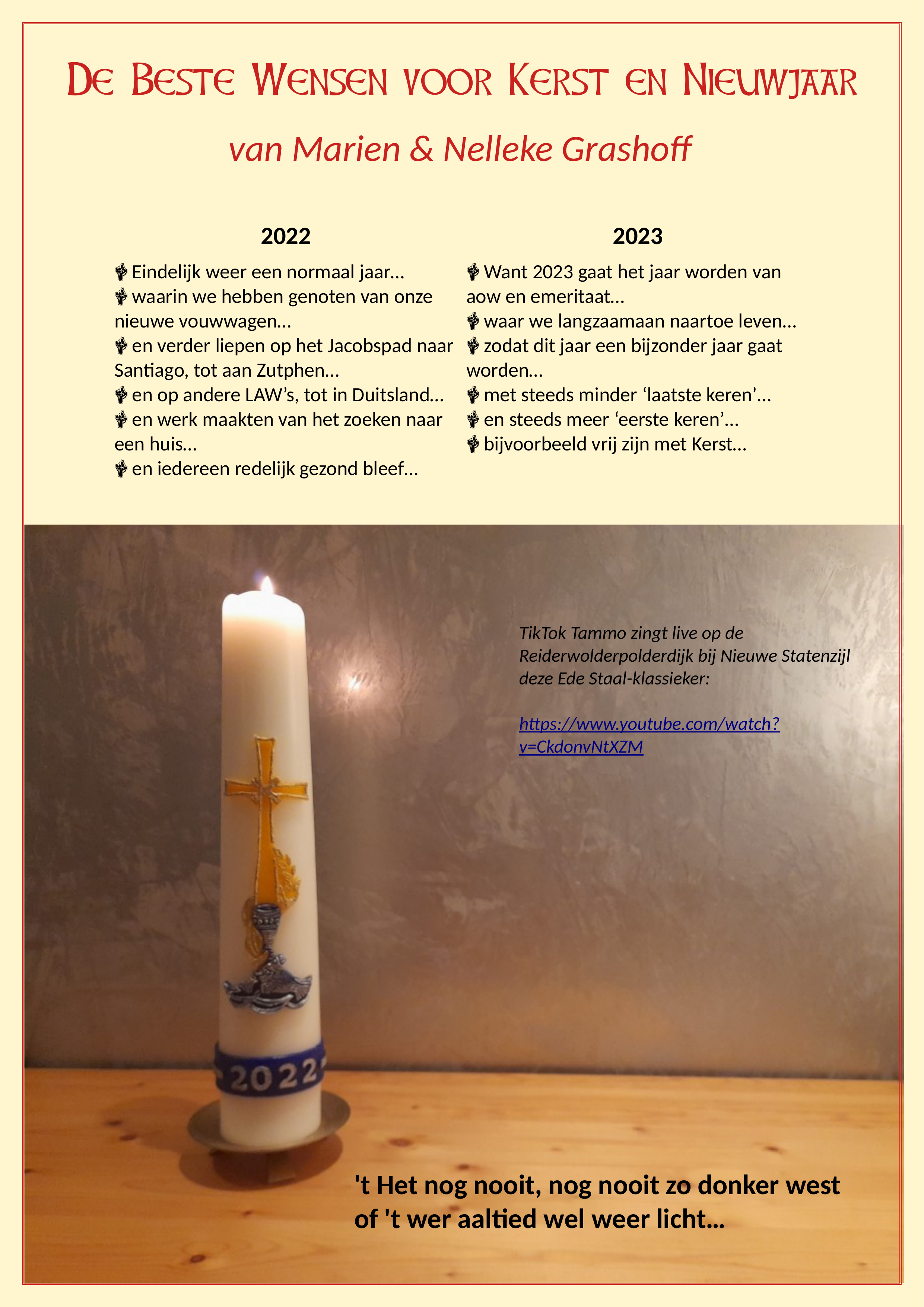 Peinzels Beste wensen! Geschreven door Marien op 19 december 202204 februari 2023. Like best wishes more? Click here. Luister hier naar TikTok Tammo live van de Reiderwolderpolderdijk.