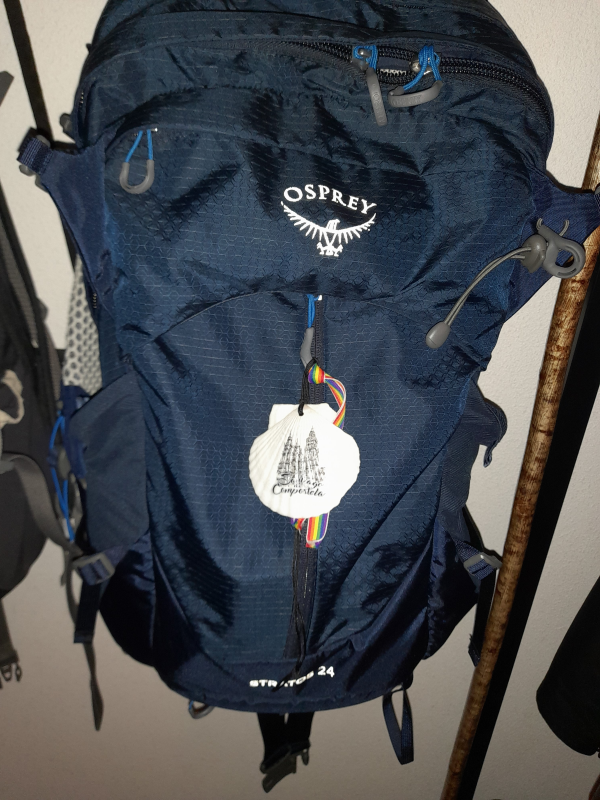 En op mijn rugzak draag ik al een hele poos ook zo’n jacobsschelp. Een echte, uit Santiago. Laatst riep een passerende wandelaar meteen: ‘Hé, jij loopt zeker de camino?’ Inderdaad. En dat is toch iets voor Perigrinantes in Spem, ‘Pelgrims van Hoop‘?